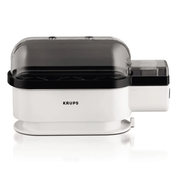 Smart lille Krups æggekoger til 3 æg – RIGTIG god kvalitet fra tyske Krups meget BEDRE kvalitet end de billige på markedet. Inkl. målebæger med æggeprikker i bunden.