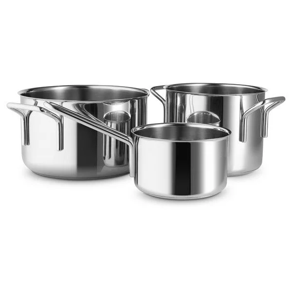 Dette grydesæt er perfekt til den studerende, sættet indeholder de tre mest brugte størrelser. Gryderne kan stables indeni hinanden så de fylder ikke meget i skabet.