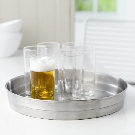 Tjenerbakke i rustfrit stål, er en super smart og elegant måde at servere alt fra drinks, mad og desserter på.