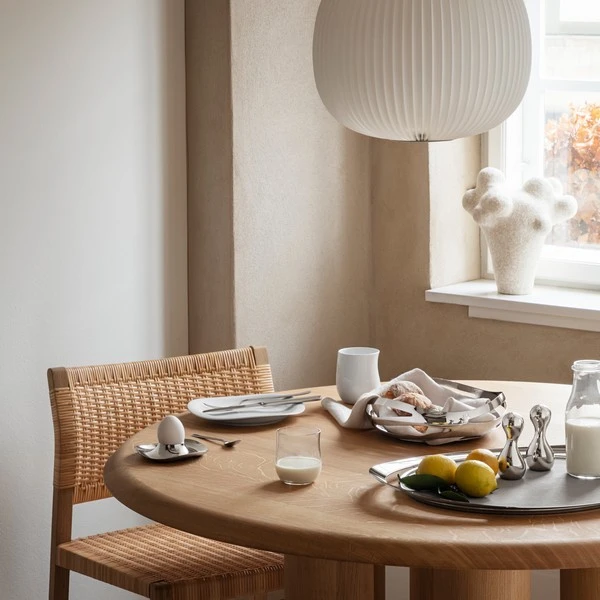 Rengøring: Brødkurven skylles med varmt vand og tørres af med en tør bomuldsklud. Man kan også bruge Georg Jensen´s stålpudsemiddel.