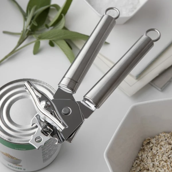 Dåseåbner i stål fra Steel-Function med ergonomisk håndtag