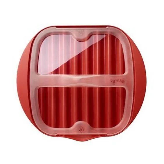 Rigtig smart bacon steger til mikroovnen, som sikrer dig sprødt bacon på under 5 minutter! Formen måler 28 x 25 cm, så der er plads til at stege en hel pakke bacon ad gangen. Med denne smarte bacon steger undgår man, at hele mikroovnen bliver svinet til i fedt, når man steger bacon i mikroovnen.