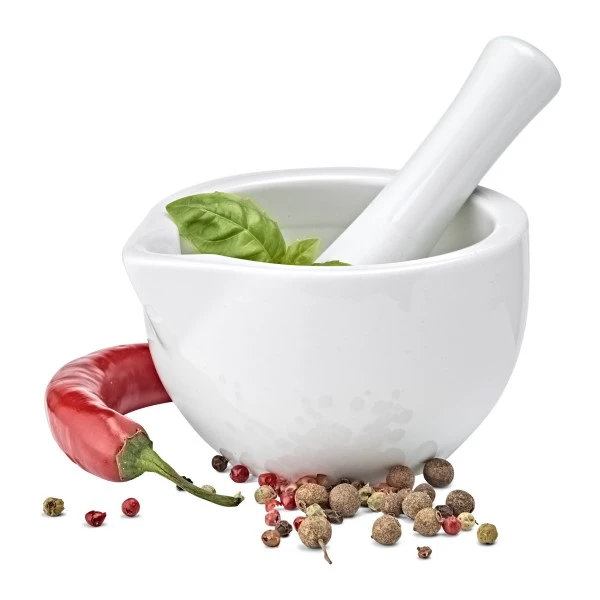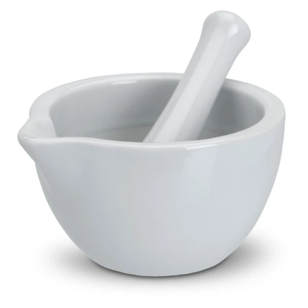 Fiks lille morter i porcelæn med støder og praktisk hældetud til hjemmelavede krydderier. Morteren er glaseret udvendig, indvendig er den ikke glaseret, men har en overflade som fint sandpapir, hvilket gør den perfekt til at knuse og male krydderier. Morteren er også velegnet til at knuse piller med, i “gamle dage” var en morter et uundværlig redskab hos apotekeren, som selv blandede og fremstillede medicin.