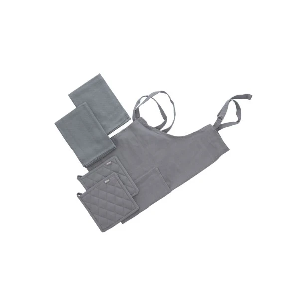 Dette unikke 5 dele tekstilsæt i lys grå, passer godt ind i de fleste køkkener.