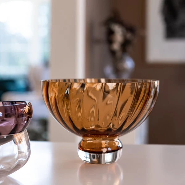Leg med former og farver har været i centrum hos Specktrum under skabelsen af denne smukke meadow amber skål. Skålen pynter i sig selv på grund af den flotte former. Den kommer med en form for klods i bunden, der er med til at sætte geometri i fokus. Den ’typiske’ skål er her sat oven på, hvor den er designet med elegante striber, der går skråt omkring skålen.
