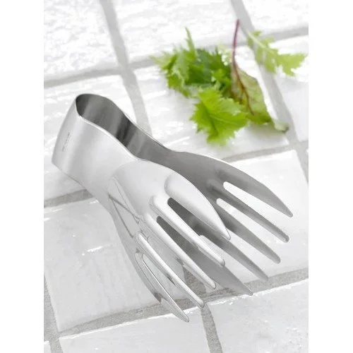 Super smart produkt! salat hånd i rustfrit stål er et super smart og genialt produkt. Istedet for at fumle med et almindelig salatbestik sæt, kan du tage salat fra salatskålen med en hånd.