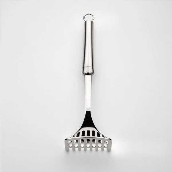 Enkel og smart puré- kartoffelmoser med ergonomisk håndtag fra Steel-Function. Fremstillet af rustfrit stål, som gør at køkkenproduktet er super velegnet til opvaskemaskinen.