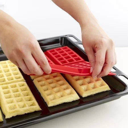 Pakken indeholder 2 silikoneforme. Den smarte vaffelform kan bages helt uden fedtstof og de tåler både ovn, fryser og opvaskemaskine. Så et bliver da ikke meget lettere.
